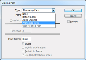 InDesign allows you to turn on and off clipping paths for only one image at a time, by selecting that graphic, choosing Object > Clipping Path > Options, and then taking the additional step of selecting the Photoshop Path (Figure 5).