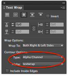 Figure 6: Select your alpha channel in the Contour Options area of the Text Wrap panel.