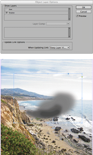 Figure 8: Hiding the vase and revealing only the shadow in the placed image via Object Layer Options.