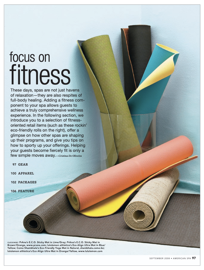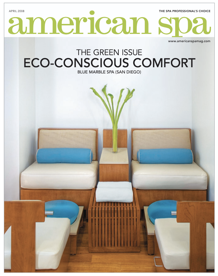The color palette used in American Spa reflects the mission of the magazine. “We use bright and lively tones interspersed with calming tones, “Goldblatt says. “I like to emphasize the excitement of new trends while reserving the more serene tones for the quiet spa images.”