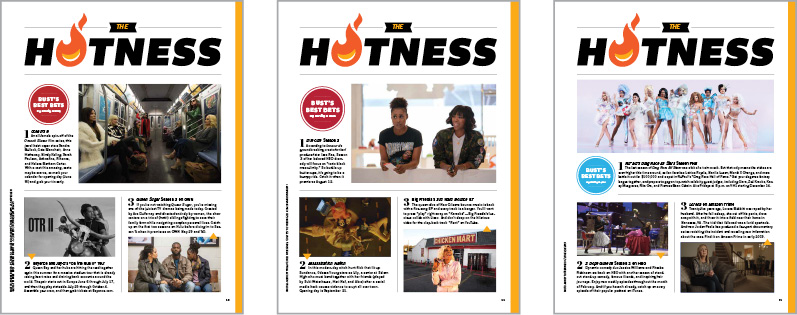 The front and back sections of the magazine are template-driven, which gives consistency from issue to issue. The typography and basic design elements remain the same, but the layout is varied to accommodate different content.