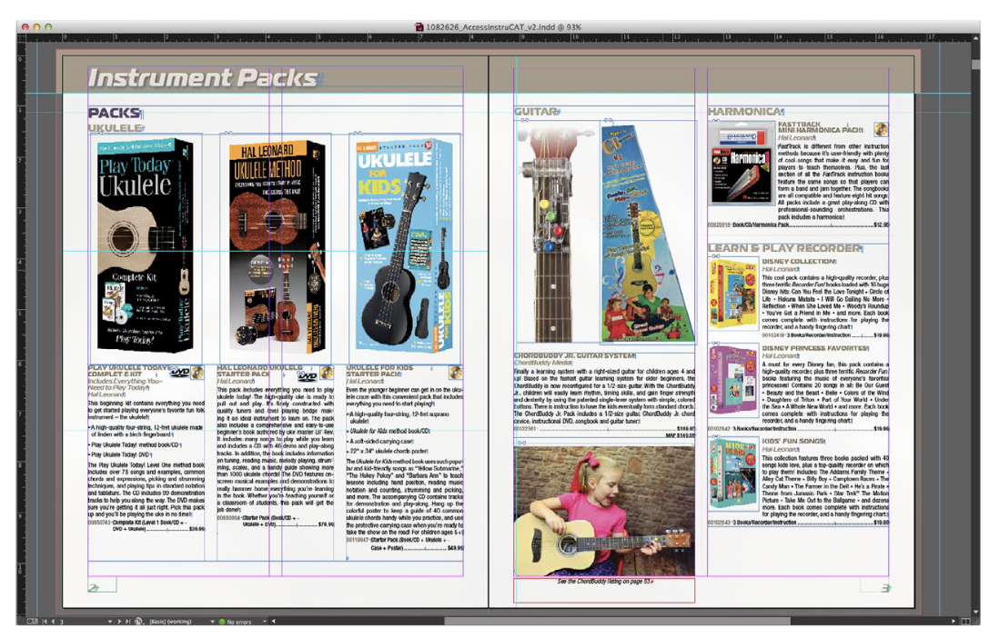 Whether you’re into the Beatles, Beach Boys, Miley Cyrus, or Stephen Sondheim, Hal Leonard publishes the music you love—the sheet music, at least! In fact, if you’ve ever bought sheet music, there’s a good chance you have something published by Hal Leonard, the largest music print publisher in the world. Hal Leonard was founded in 1947 (the name is a combination of two brothers’ nicknames: Harold “Hal” Edstrom and Everett “Leonard” Edstrom), and now sells a catalog of over 200,000 products, including songsheets, artist songbooks, instrument instruction books and magazines, and books about how to make it in the music industry. Astonishingly, an in-house team of only 16—about half designers and half production staff—design and construct thousands of products and promotions every year. After switching from QuarkXPress about 8 years ago, they became enthusiastic users of the Creative Suite. Today, they are Creative Cloud members, and InDesign forms the backbone of their publishing workflow.