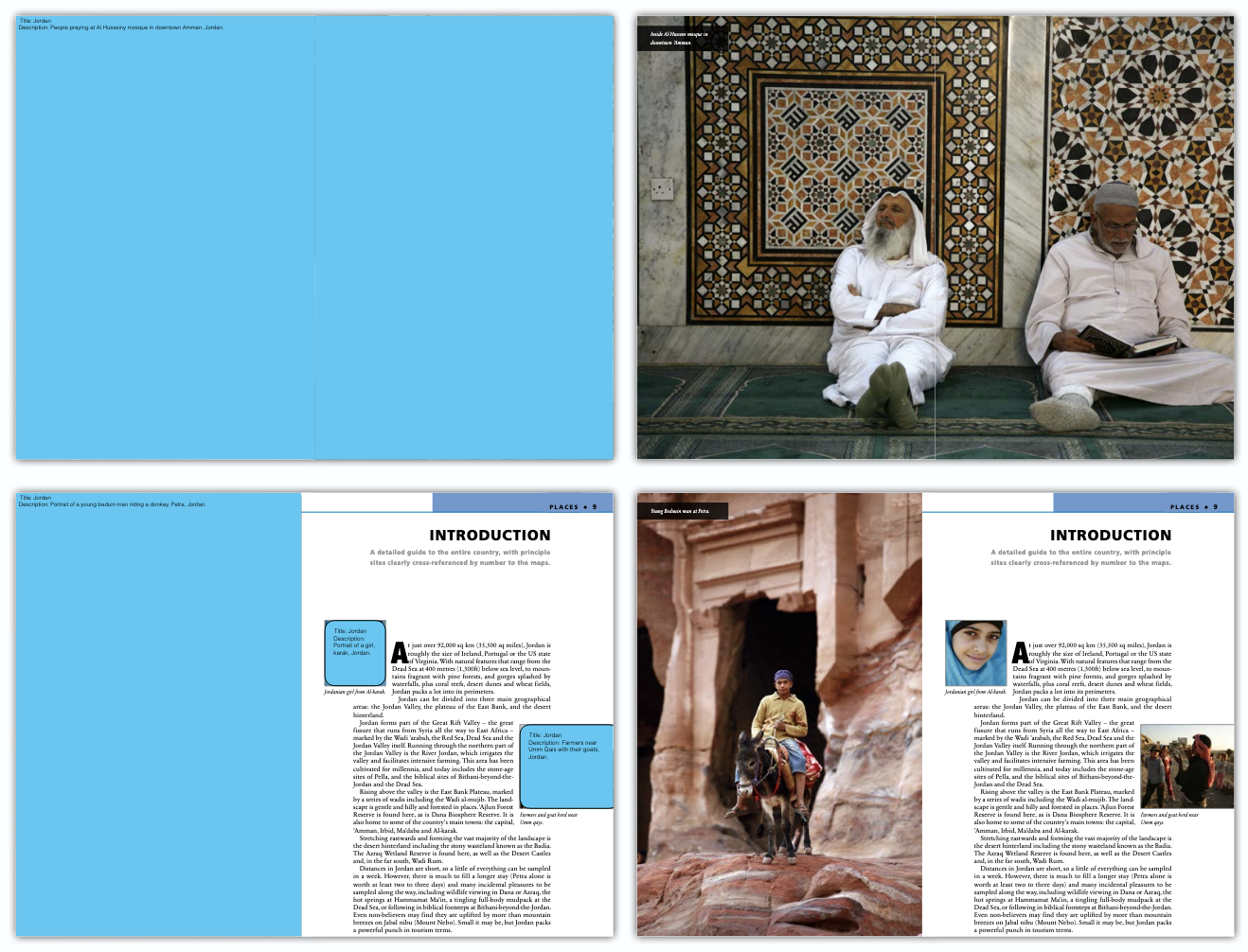 The print version of the Editor’s Choice section uses floating images—photos that can be placed anywhere on the page—and refers to additional resources with page numbers in text. Given the linear nature of eBooks, images are placed as inline graphics, but the eBook version also includes hyperlink to access additional resources. Insight makes the most of the interactivity inherent in eBooks by incorporating both internal and external hyperlinking. A highlights section in the front of the ebook links to the place referenced elsewhere in the book. Other links lead to maps and other resources. The external links take the reader to related sites. “Editors use Word’s auto-linking feature to point to sites,” deRidder says. The links are then automatically imported into InDesign.
