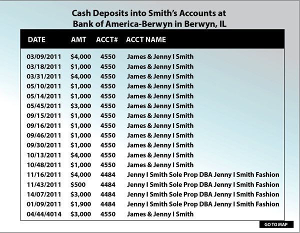 In one particular money laundering case, Johnson was given a list of bank deposits at various bank locations—deposits that consisted of profits from unlawful activities, such as selling narcotics… in short, the spoils/evidence of the crime of money laundering (Figure 1).