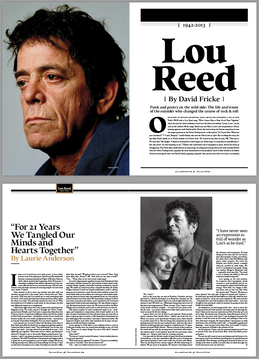Lou Reed appeared many times in the magazine’s pages, including this memorial article. This is from the print edition.