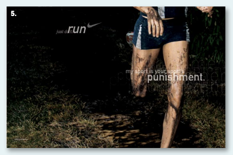 Nike Ads: 1, 2, 5: Art Director: James Selman/Chris Thurman/Hal Curtis Creative Director: Hal Curtis/Mike Byrne 3, 4: Art Director: James Selman Creative Director: Hal Curtis/Mike Byrne