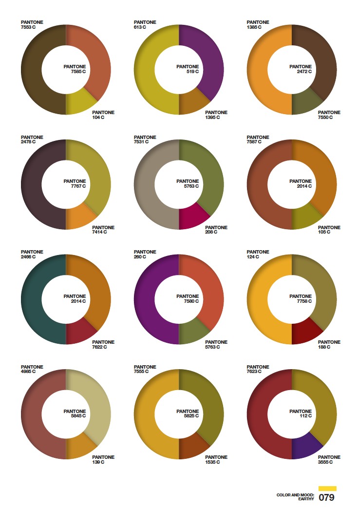 From there, the book moves into the two largest sections, dealing with the psychology of color and how color and moods go hand in hand. In the former section, Eiseman looks at individual colors, what they represent, and the personality traits often associated with those that love—or loathe—each color. Speaking only for myself, I have to say that most associations were quite accurate. In the latter of these two sections, she discusses how color and their combinations can affect or convey moods. From the tasty pastels of the mood dubbed “Delectable” to the earthy palette of “Casual” to the spiciness of “Piquant,” the mood section is populated by collections of color combos. Each 3-PANTONE color wheel features a dominant, a subordinate, and an accent color to create a variation of that mood. Eiseman suggests starting with the mood to be conveyed in your design, and then using the combinations as a jumping-off point to inform your color choices. The final sections discuss marketing, color trends, and the ideas that go into naming colors.