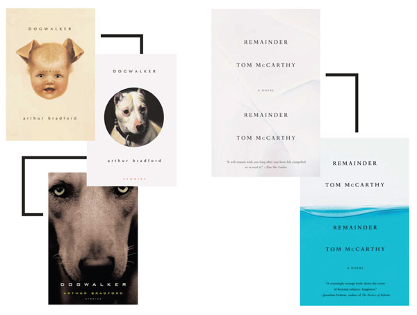 The included articles showcase painted covers, highlight an interview with Paul Buckley, Penguin Books’ Art Director, and discuss the seductive qualities  of romance novel cover design (hint: think abs and kilts!). The most interesting and insightful piece has to be the “Kill Your Darlings” article. It focuses on eight books and their initially rejected covers. They profile the cover art for Dogwalker, which went from a slightly frightening yet compelling baby-dog hybrid to a classic dog painting to a dull-but-safe close-up of a dog. The original cover for Send (about email etiquette) was cast aside due to worries that it might be too racy to display in chain bookstores. Strange though some of the examples are, they help prove the point that a good book cover should get your attention one way or the other.