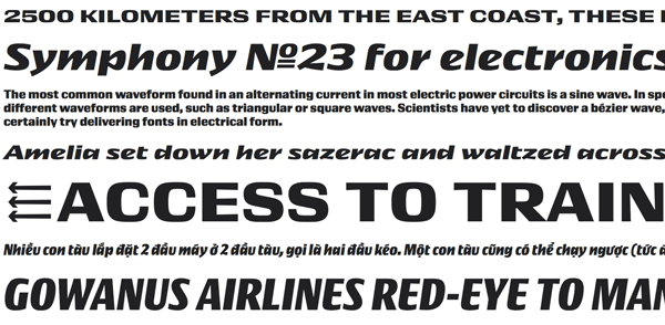 really a standalone style with its own unique identity. There is an unevenness to the letterforms, both in consistency of thickness and also in the angles of many of the glyphs’ horizontal and vertical lines. More display font than one to be used in large swaths of prose, Conductor lies somewhere between the serious and the whimsical. Each width is available for desktop use for $75 and contains both roman and italic, or purchase the entire 8-font family for $200.