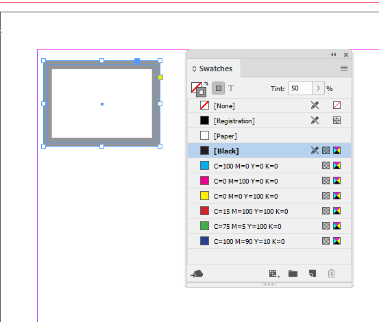 The first method involves creating a compound path. Start by drawing a frame on the page using the Rectangle tool. Make it stand out a bit by giving it an 8-point stroke. I’ll use 50% gray, but feel free to use any color you’d like. Don’t worry about being too precise about this, since it can be adjusted later (Figure 1).