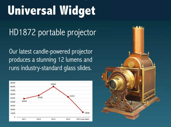 Exporting a test file to PowerPoint produced an accurate, exact version of the InDesign file, with editable text in the size and font of the original. Unfortunately, if the images on your page are too close together, or if they’re on top of a background color, in the exported file they will be compressed into a single image. So in my example, the slide projector and graph have both been merged onto the background (Figure 2).