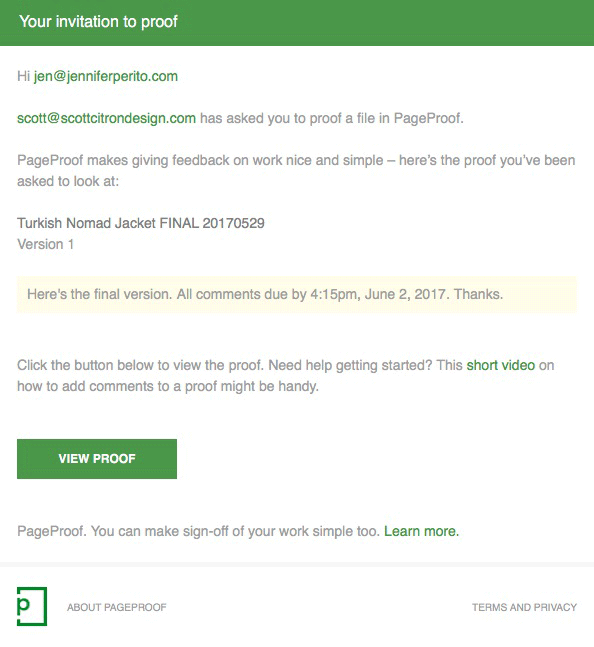Clicking the View Proof button takes reviewers to the online proof, which is already gathering everyone’s comments. Since everyone is commenting on the same proof in real time, the feedback process is quick and efficient.