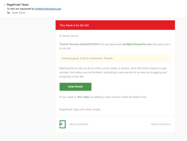 Based on my Profile settings (discussed earlier), I then discover an email alerting me that the proof has been returned with three comments from the reviewer (Figure 14).