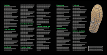 For the inside spread, we added a text box large enough to bleed off the page and filled it with a black background. Then we inserted the text file that contained the lyrics. We applied the Title style sheet to the song titles and the Lyric style sheet to the lyrics. Once the text was placed and the style sheets applied, we also went into the Text tab of the Modify dialog box and changed the Text Inset to 26 points and the Vertical Alignment Type to Justified. The final version of our inside spread is shown in Figure E.