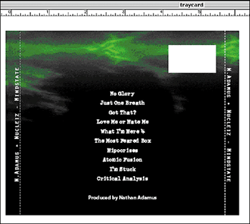 The last step is to add the area in which we want the service bureau to strip in the bar code. (This isn’t necessary if your CD isn’t going to be sold in retail stores.) The standard size needed for bar code placement is 0.05 inches high by 0.75 inches wide. We created a space for the bar code in the upper-right corner of the back of the insert. However, its placement should be confirmed with your distributor. If it isn’t placed correctly, it may not be accepted.