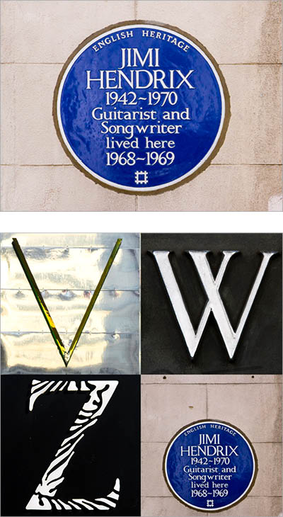 Figure 5: Jimi Hendrix was the first rock musician to be honored by English Heritage with a blue plaque: what better full stop for a London alphabet?