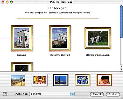 Figure 5: iPhoto’s HomePage button lets you quickly create and post a Web-based photo album of your images.