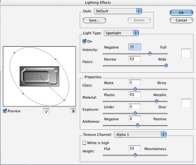 Go to Filter > Render > Lighting Effects to bring up the dialog box you see in Figure 13.