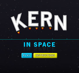 One of my favorite creative pro retailers, Veer, has a new online time waster. The game, called “Kern In Space,” presents you with one challenge: Kern all the letters before your fuel runs out. Sounds simple, but can your earth-based kerning skills function in this oxygen-free environment?