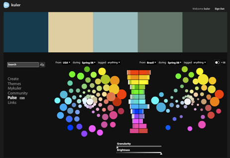 John Nack, principal product manager, Adobe Photoshop, reports on his blog that the Kuler team has added a new feature to the color harmony creation and sharing site: Community Pulse.