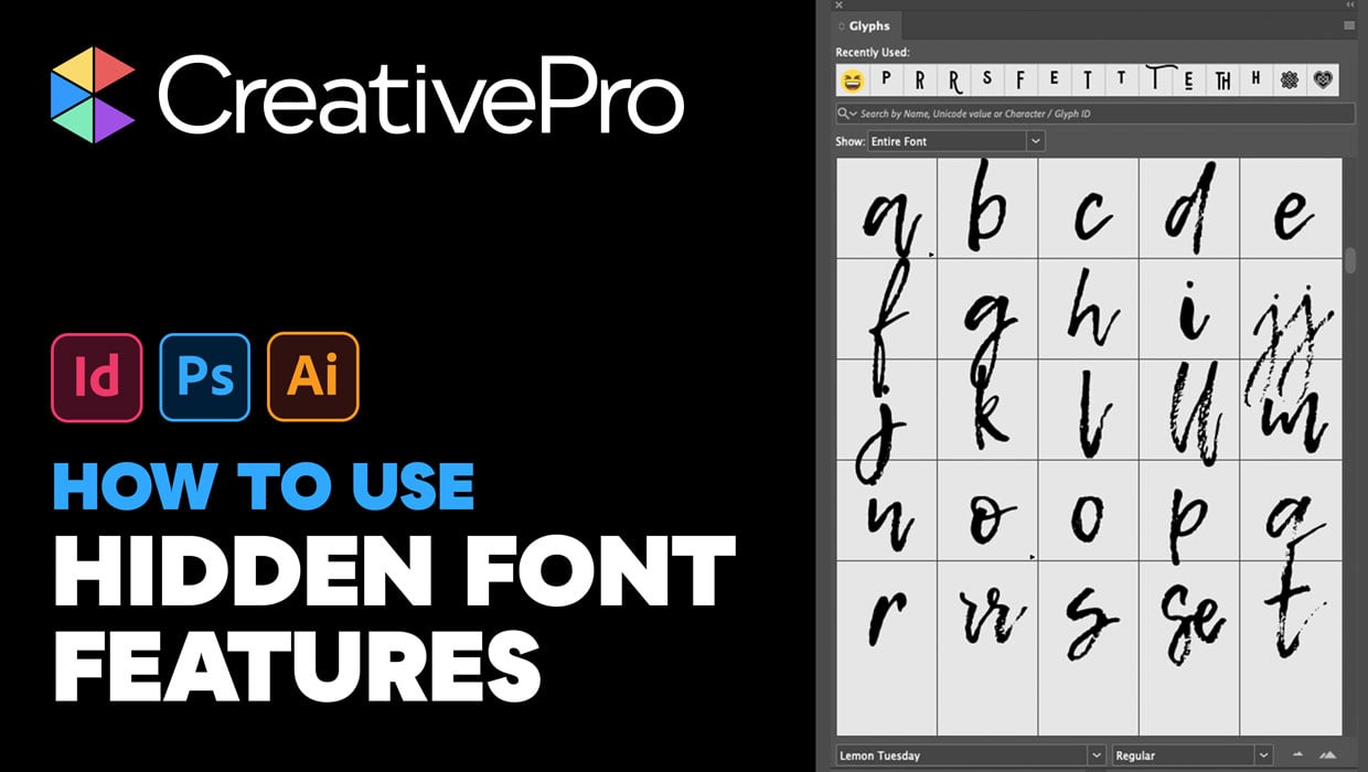 Join Khara Plicanic for a deep dive into accessing hidden font features in Photoshop, InDesign, and Illustrator to elevate your typography.