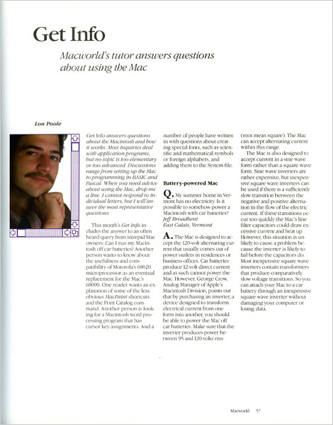 For minor features, the display type was much chunkier at 54-point, giving it a clear identity distinct from other three-column matter in the magazine. The text’s hangline on the opener was the same as in departments, but features always opened on a spread, and this along with the larger type created the unmistakable impression of the article’s place in the informational hierarchy of Macworld.