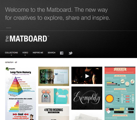 There’s no denying that Pinterest has a lot to offer creatives as a source of visual inspiration (and time-sucking pixel hoarding). But it can be a bit unfocused. Browse the Design category and you’ll see everything from infographics to artisinal lightbulbs. For an alternative that’s completely focused on graphic design, check out Matboard.