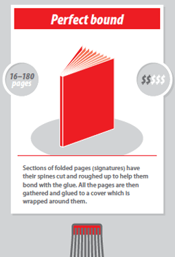 UK design agency the Media Collective has supplemented its Print Handbook for Designers with a small guide to binding. Like the full Handbook, the helpful binding guide combines short bits of text with images. Together, they explain the binding methods saddle stitch, loop stitch, stab stitch, perfect bound, singer sewn, and case bound. Here’s one panel of the guide: