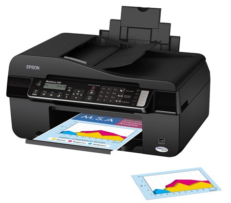 The WorkForce 520 delivers high-performance 2400 dpi scanning, including direct scan-to-PDF for archiving important documents and scan-to-e-mail to easily send invoices or proposals. It also offers standalone color and black and white copying, and the capability to fax documents directly from a computer5.