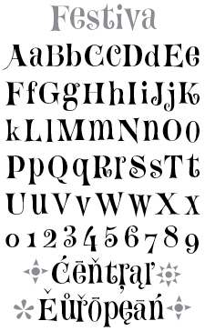 Festiva Regular includes a full unicode European Character set (Western, CE, Turkish, Romanian etc).