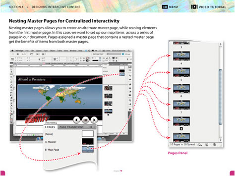 For many designers trying to produce advanced interactive experiences, scripting remains a major hurdle. With this video and text combo, designers will start in familiar applications, such as Adobe InDesign, Photoshop, and Illustrator, to create a visually rich and engaging interactive Web document—all without coding! By the end of the tutorial users will have built a finished product that includes a global navigation bar, video with navigation points, and sequenced animations of pages.
