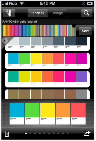 The myPantone Apple iPhone app gives you access to Pantone color libraries and the ability to build color palettes and share them with colleagues and clients.
