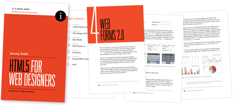 While many newspaper, magazine, and book publishers are exploring electronic distribution, Web luminaries Jeffrey Zeldman, Jason Santa Maria, and Mandy Brown have launched a print publishing house. A Book Apart‘s first title is HTML5 For Web Designers by Jeremy Keith. It’s 85 pages long and sells for $18.