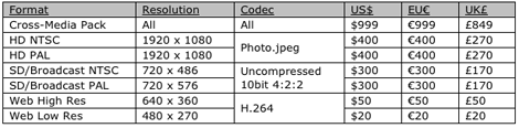 The Cross-Media Packs and individual motion clips will be available in the following formats and prices: