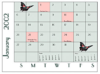 Now that your colors and graphics are in place, your design possibilities are endless. You can add color to the text, background, individual squares, etc. You can place your images behind the calendar, in corners or inside squares. Figure I shows some more examples of how you can easily spruce up the Calendar 1 script.