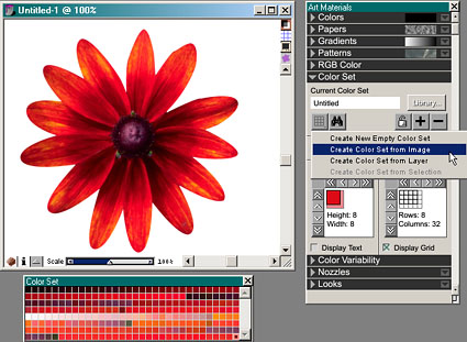 Another big UI improvement is the ability to create color sets from an image, active layer, or current selection. In earlier versions, we had to use the Eyedropper tool and pick up each color individually. In version 7, a button in the Color Set palette generates a new palette automatically. Too bad only one 256-color palette can be open at a time; that feature will begin our upgrade wish list for version 8.