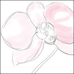 3. Painting the first washes. The brushwork in the "Pink Orchid" study is loose and spontaneous. As you prepare to begin adding color, make a few loose, practice brushstrokes. (You can always undo the brushstrokes by pressing Ctrl/Command-Z, or you can delete your practice Watercolor layer by selecting it in the Layers section of the Objects palette and clicking the Delete button on the palette).