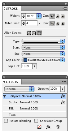 That’s one stroke on the outside of the picture, using a similar “inner stripe” stroke I made in the earlier post (the stroke color is tan and the gap color is blue):