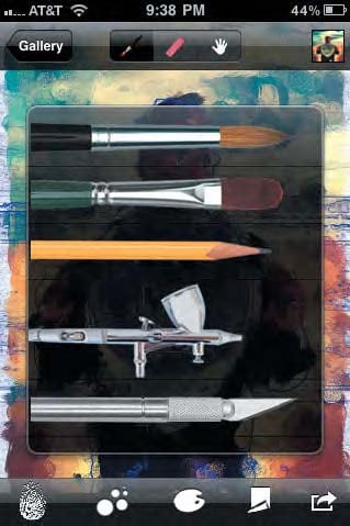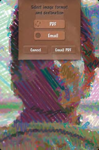Artist’sTouch allows you to selectively clone-paint an existing image. There is no other app I know like it. You start by importing a photo; the app then creates a ghosted line-drawing version. After choosing a brush type and size you paint back in the image color and detail. Change the size of the brush to get more detail in certain areas.