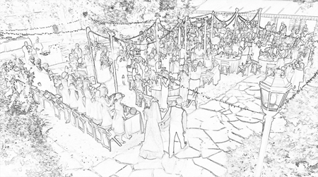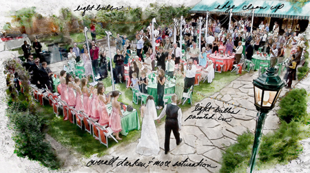 I chose a densely populated action wedding scene (Figure 1) to demonstrate how you can achieve very fine detail. Most images will be far simpler and less time-consuming to execute. For larger versions of all figures, click on the images.