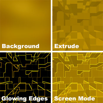 To make the block shapes more dynamic, we outlined them with the help of the Glowing Edges filter. To do so, duplicate the Extrude layer and then choose Filter > Stylize > Glowing Edges. In the resulting dialog box, experiment with the settings until you get a nice bright outline and then click OK. To apply the outline, set the blending mode of this layer to Screen, as shown in Figure K.