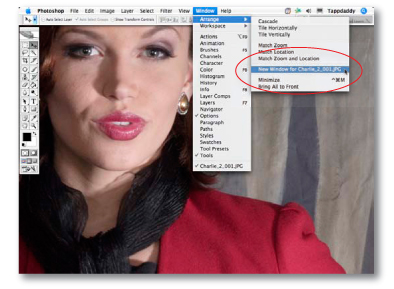 Photoshop opens a second window of your active image when you select Window > Arrange > New Window. It’s perfect when you want to do detail work and see the entire image at the same time.