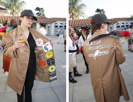 Me in a coat that says, “Dolly Rogers’ Discount Software. Prices Slashed.” I was a software pirate.