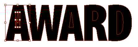 3. Now use the technique we used for the graphic frames to select the inner subpath of each letter that has a counter. Option/Alt-click on the edge of the subpath to select all the anchor points. Once selected, choose Object > Paths > Reverse Path.