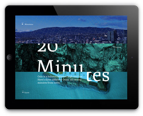The second example is an iPad app for Katachi magazine. It’s fairly new. They’ve only published a few issues so far, but they’ve done some wonderful work demonstrating how you can combine an innovative design vocabulary with touchscreen gestures to convey complex, memorable messages. One simple but elegant design in the app compares three different watches using changing depth-of-field and focus. When the viewer taps on one watch, it comes into focus and the others blur softly. It’s a great, simple way of presenting a collection of objects without making the viewer navigate through multiple screens.