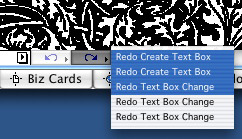 Figure 5: Multiple undo and redo actions are available through simple buttons (as shown by the arrows) or by bringing up a pop-up menu that lists all previous actions. However, the descriptions of these action are rather simplistic, and not terribly helpful as a navigation aid.