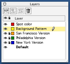 Figure 7: Layers are well executed in XPress, and can be locked, suppressed, merged, etc. through the Layers palette. But you cannot copy layers between documents in a project.