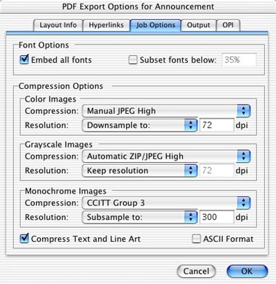 Whether from XPress or InDesign, I recommend that you or your service provider use a third-party application or service (like Markzware FlightCheck or Enfocus PitsStop) to assure that your PDF files are ready for print. But checking and modifying an XPress PDF file will be much, much easier than distilling it from the application format as we had to do before. And certainly creating PDF files for intermediate proofing, printing on non-PostScript printers, and markup and approval is now considerably easier. Remember, though, that you’ll have to change the settings manually every time you want a different flavor PDF file. And you cannot write PDF to disk for an entire book (in the book palette) or all of the layouts in a project.