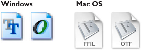 Because OpenType is a variant of the TrueType spec, you often see OpenType font icons assigned to font files whose names end in .ttf (which stands for TrueType Font).