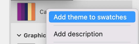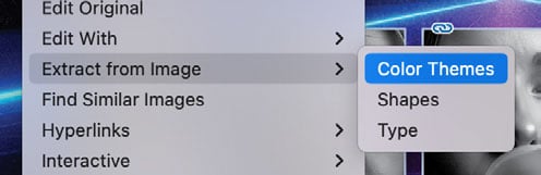 Right-click your main graphic with the colors you want to apply and choose Extract from Image > Color Themes. This pulls dominant colors from placed images and saves them as swatches.